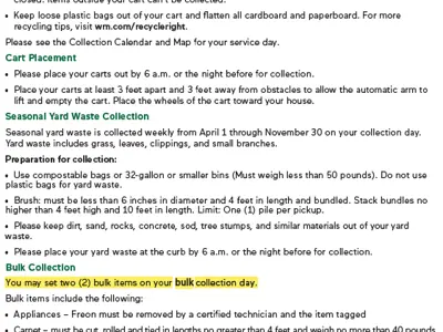 Bulk Item Pickup Clarification Under New Waste Collection Program