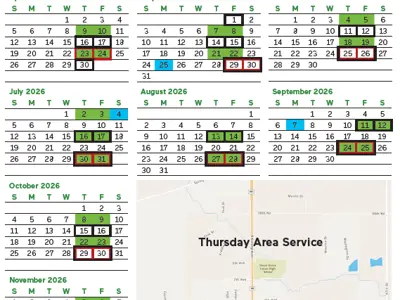 - Bulk pickup occurs on the last full week of the month on your regular service day (Thursday or Friday).